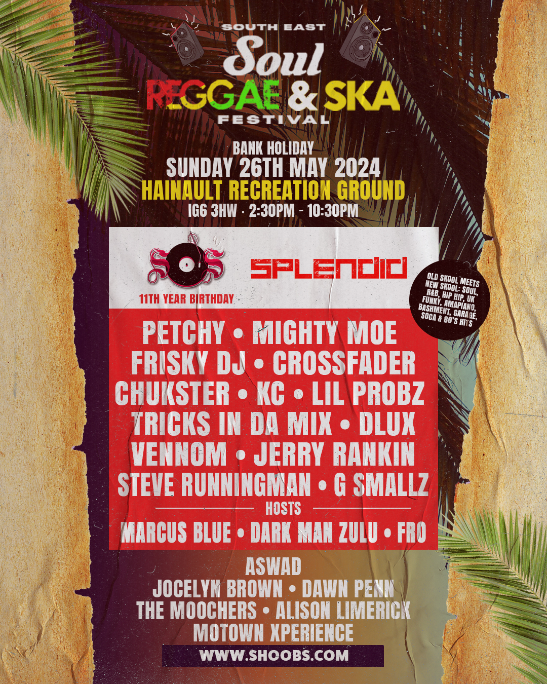 South East Soul, Reggae & Ska Festival Featuring SOS (11th Birthday Bash) x Splendid: Old SKool meets New Skool 📆 Bank Holiday Sunday 26th May 2024 📍 Hainault Recreation Ground - IG6 3HX ...