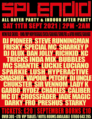 9teen9ties hosted by Splendid is back again taking you back tobthe best musical eras with a Splendid line up playing 90s/00s RnB, Bashment, House and Garage, Jungle and Hip Hop: Mighty Moe (DJ Set)...