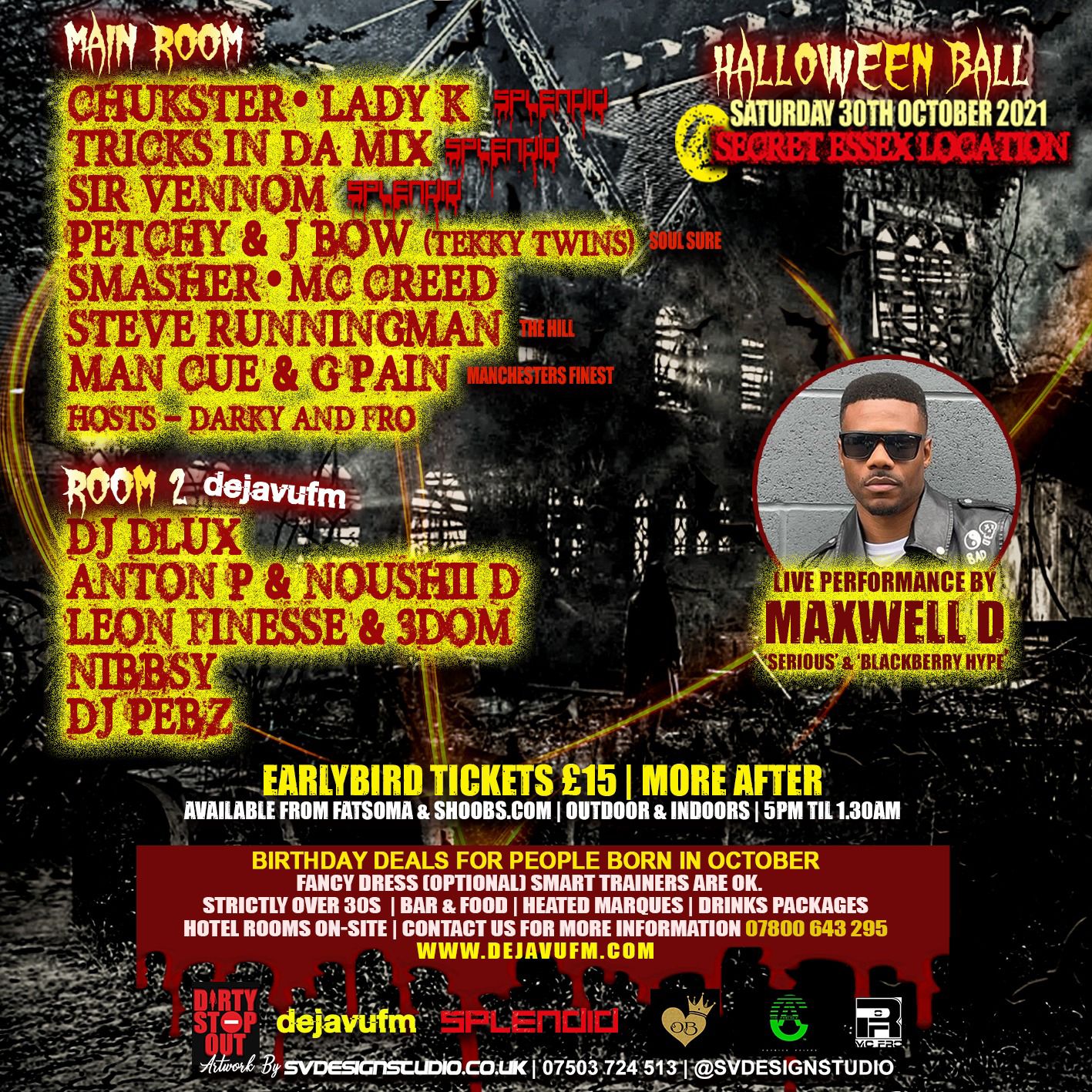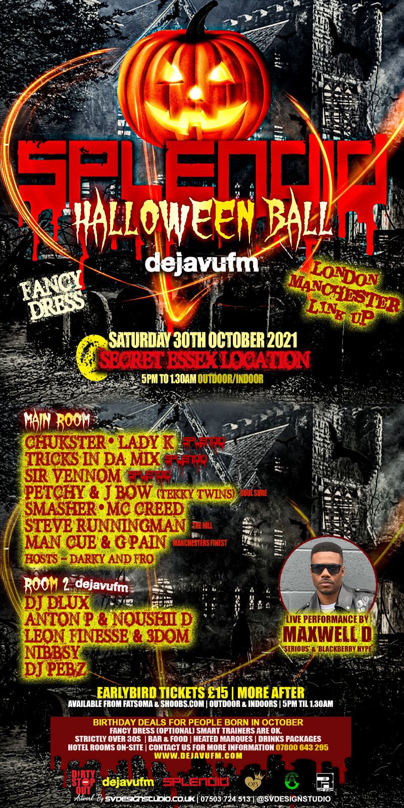 Outdoor (heated marquees) and indoor party After the success of the last Splendid event and the huge demand for another one, we are back and this time we have Deja vu hosting Room 2 for our Hallowee...