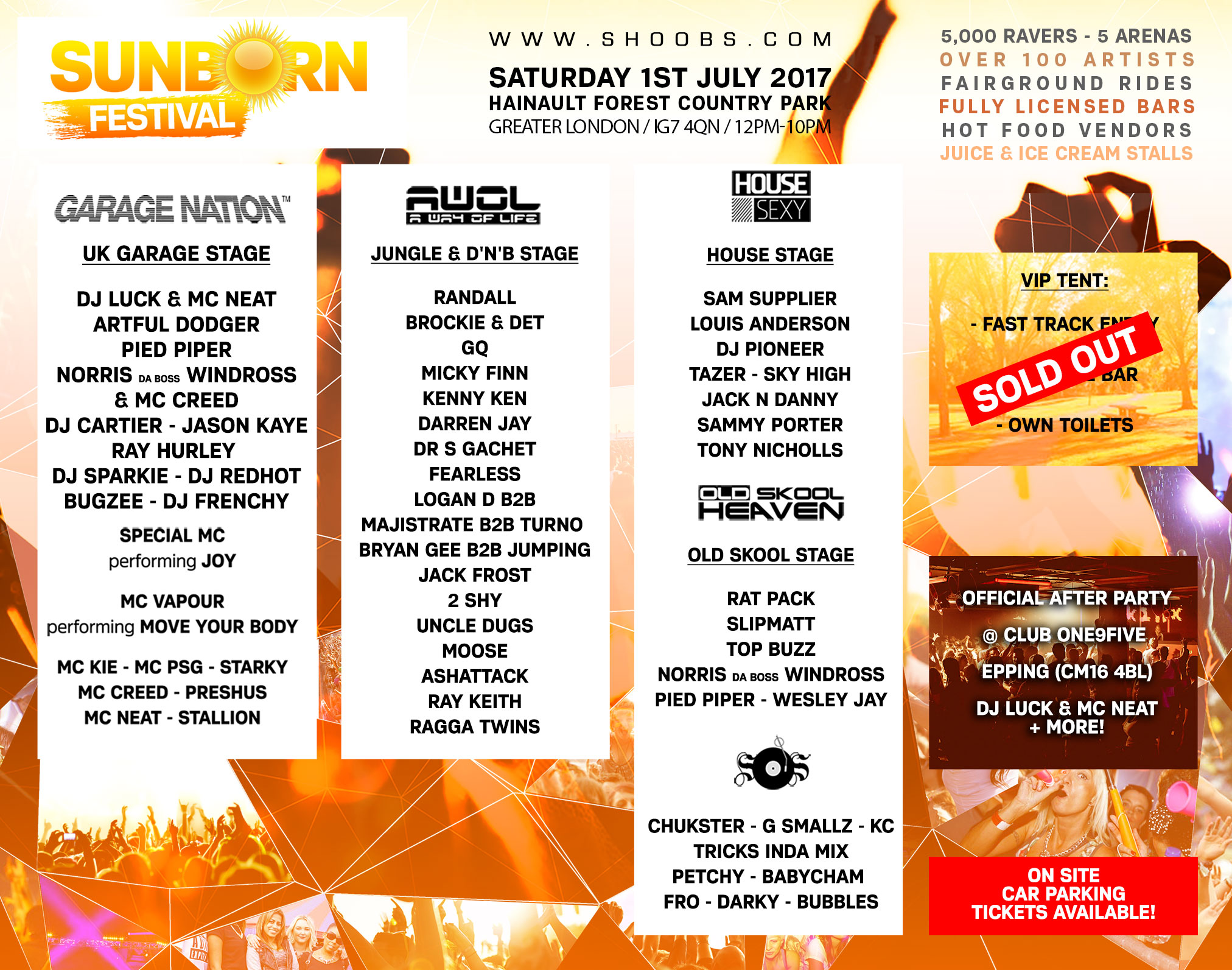 SunBorn Festival Saturday 1st July @ Hainault Forest 5 Arenas - 5,000 Ravers - Over 100 Artists —————————————————————— Online Tickets: www.bit.ly/sossbfest2017 Paper Tickets: 07961 433 382 --...